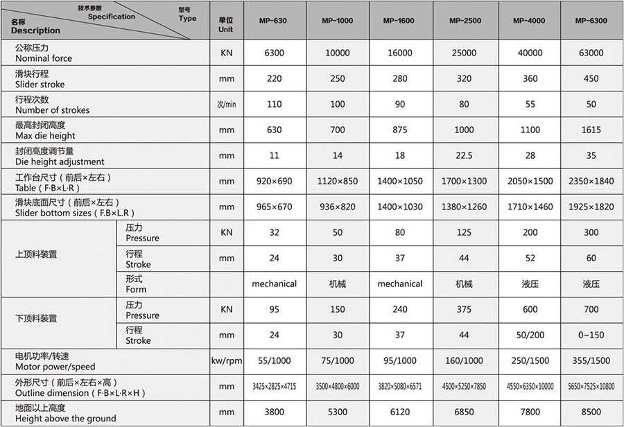 MP系列熱模鍛壓力機(jī)是引進(jìn)德國先進(jìn)技術(shù)生產(chǎn)的改進(jìn)型系列產(chǎn)品, 擴(kuò)大了壓力機(jī)使用范圍。